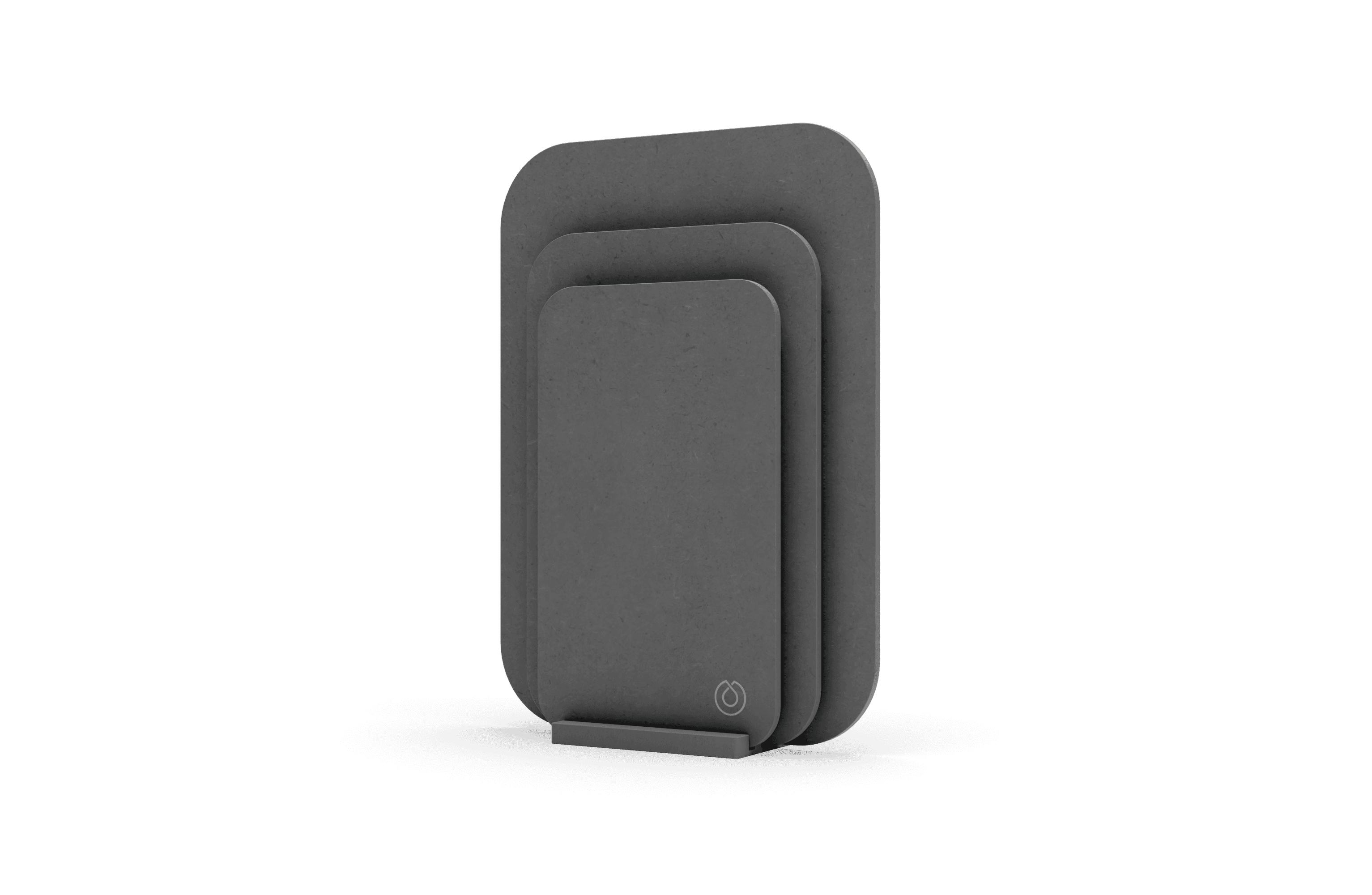 3 taglieri in fibra di legno di alta qualità (taglie S, M, L) + supporto pratico